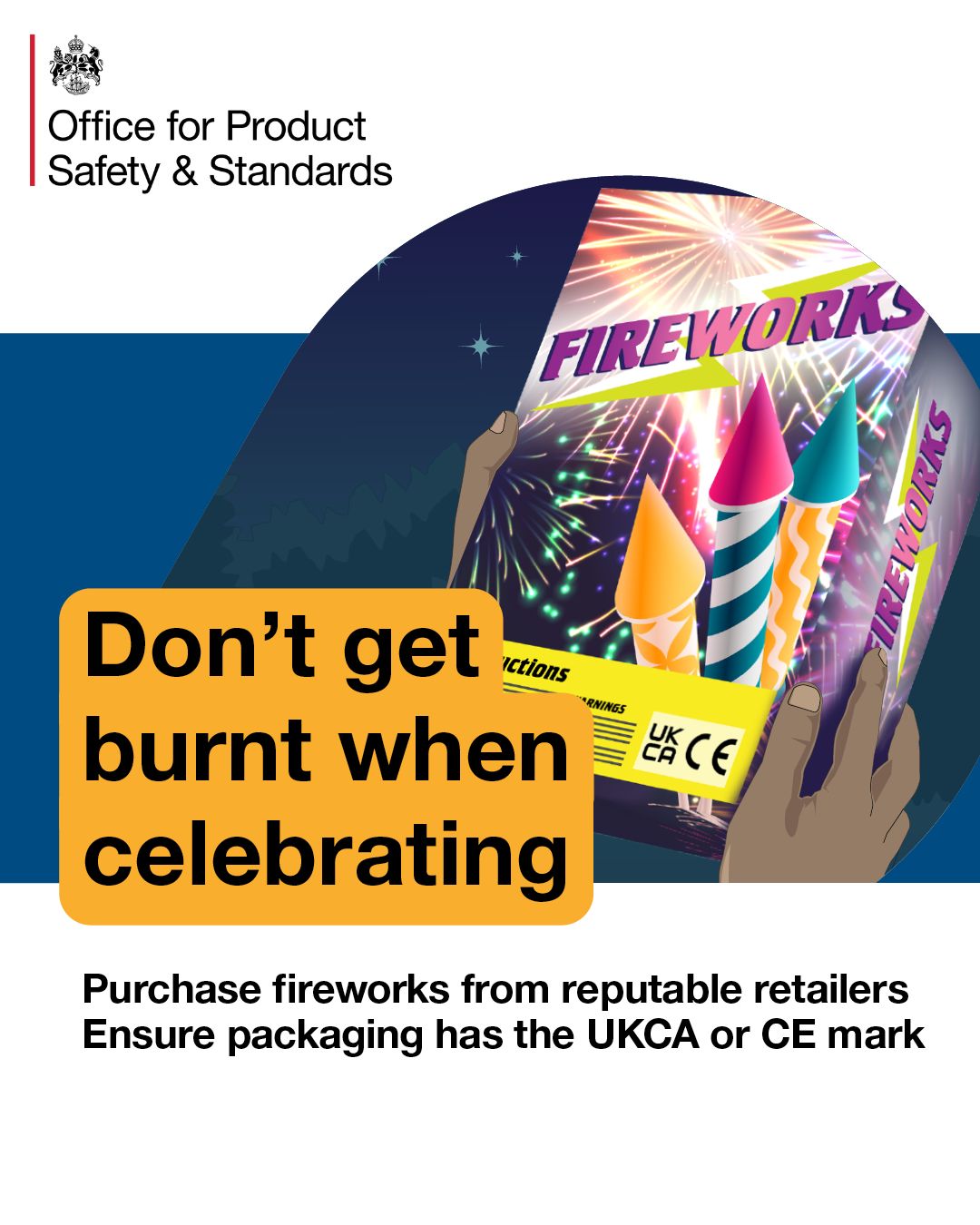 - Don’t get burnt when celebrating – Purchase fireworks from reputable retailers. Ensure packaging has the UKCA or CE mark.