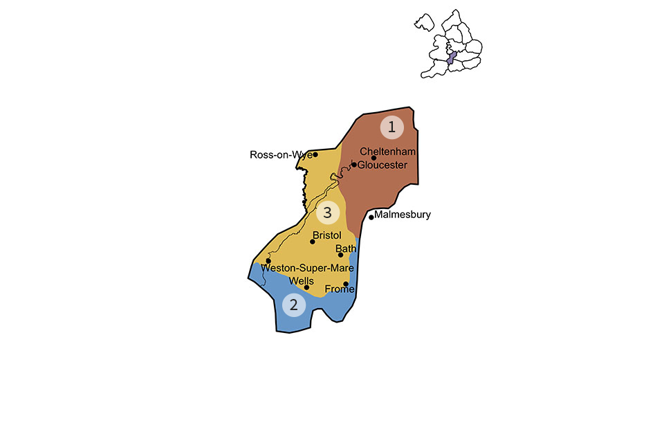 We have divided the Bristol and Gloucester region into three subregions.