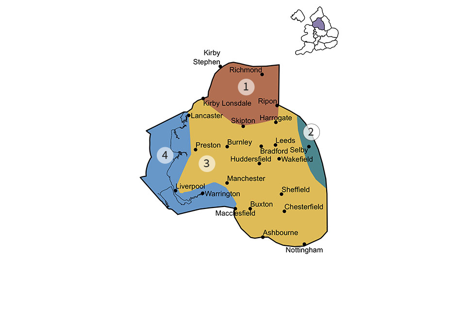 We have divided the Pennines and adjacent areas region into four subregions.