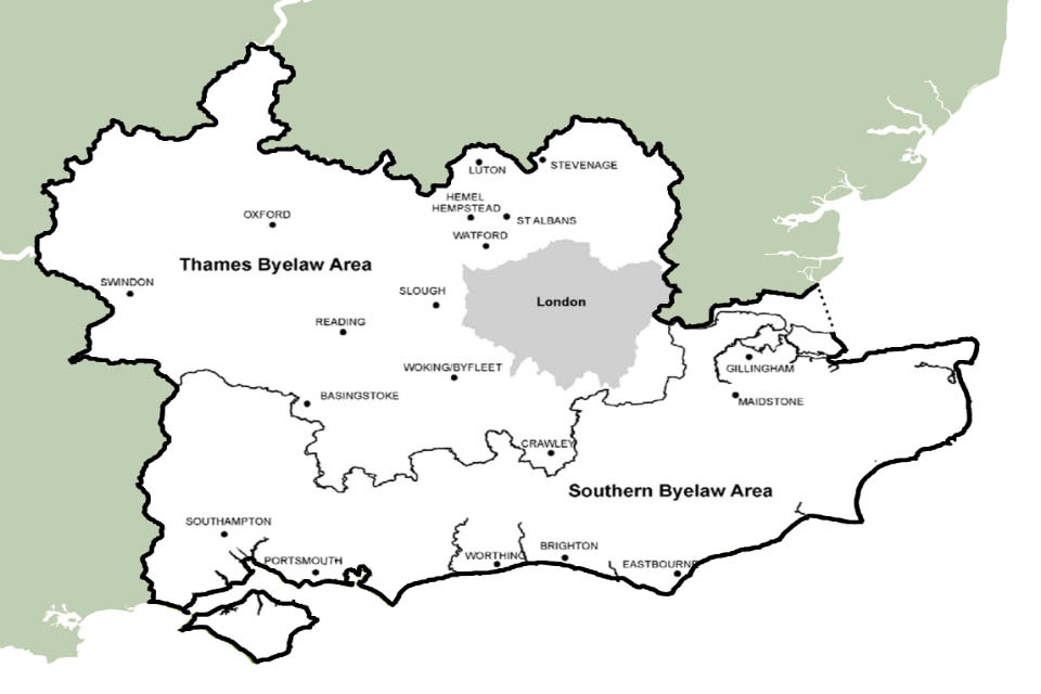 The South East is divided into 2 byelaw areas – Thames and Southern byelaw.