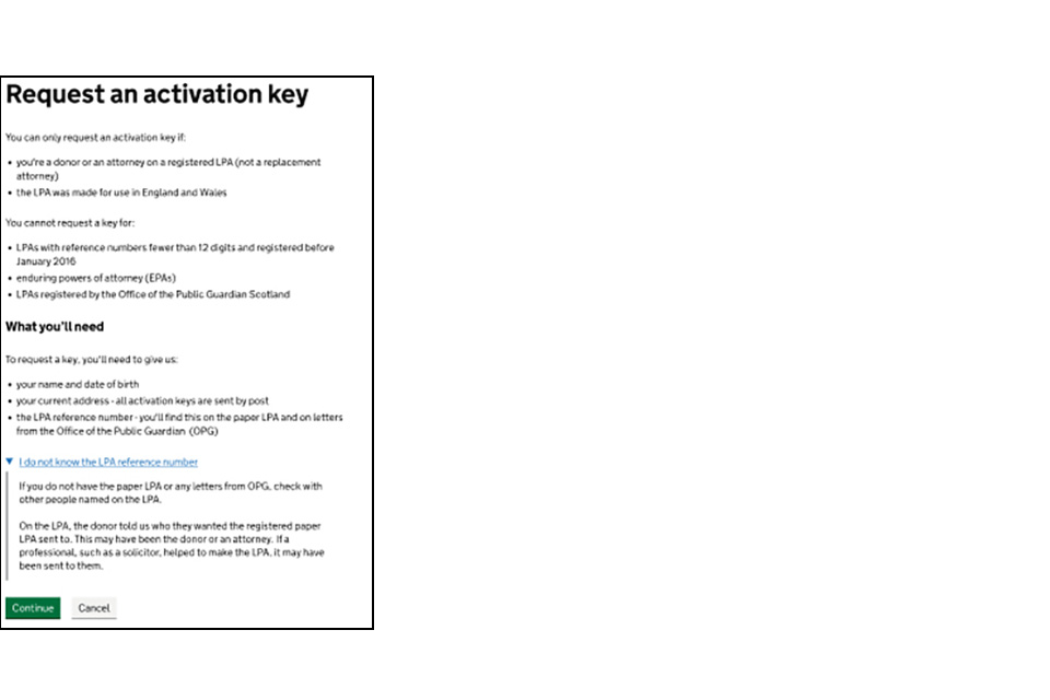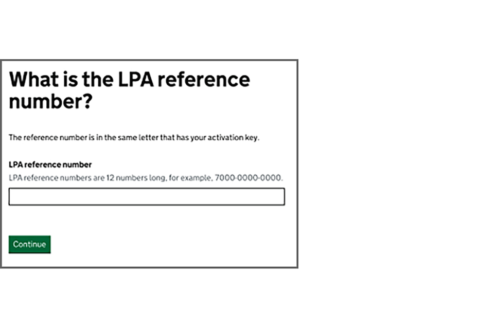 To do this, you need an LPA reference number and the activation key that corresponds to that LPA. You can find these in the letter sent to you when the LPA was registered.