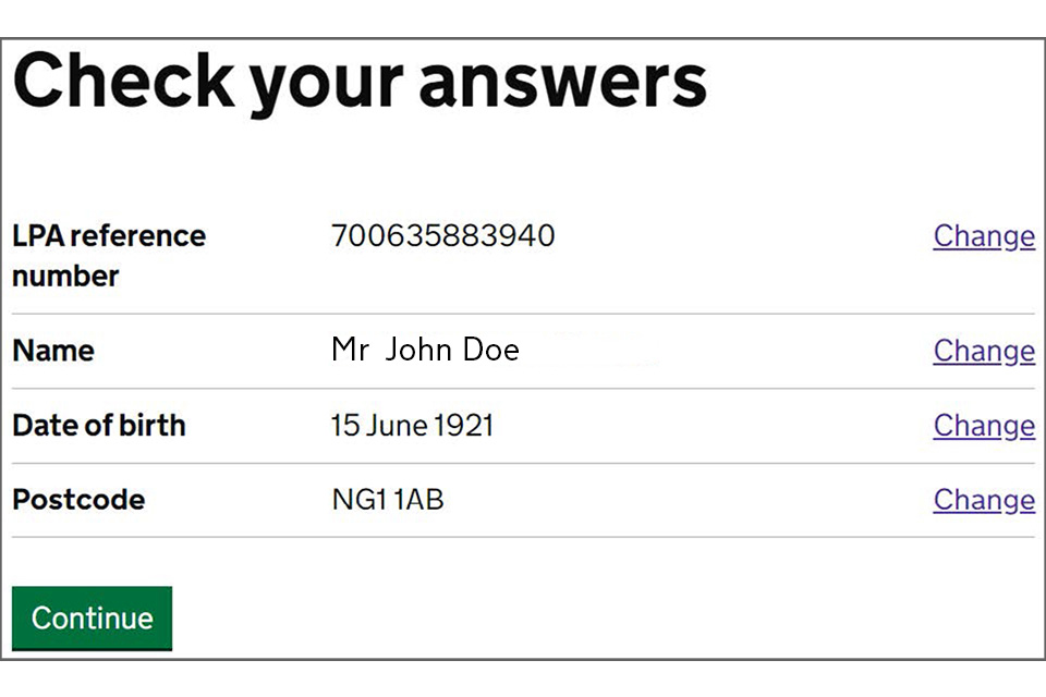If the LPA was registered between January 2016 and September 2019, you may be asked for some additional information about the LPA at this stage. This will help verify your role on the LPA.