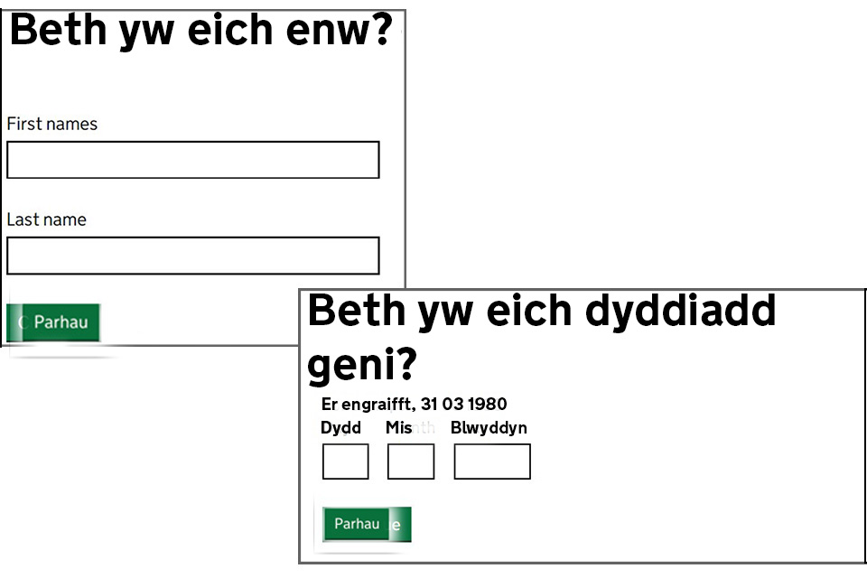 Gofynnir i chi roi eich enw. Defnyddir hwn i gadarnhau eich bod ar yr LPA. Os ydych wedi newid eich enw ers i’r LPA gael ei gofrestru, a’ch bod eisoes wedi cysylltu â ni i ddweud hynny, gwnewch yn siŵr eich bod yn rhoi’r enw sydd gan Swyddfa’r Gwarcheidwad Cyhoeddus (OPG) ar gofnod.