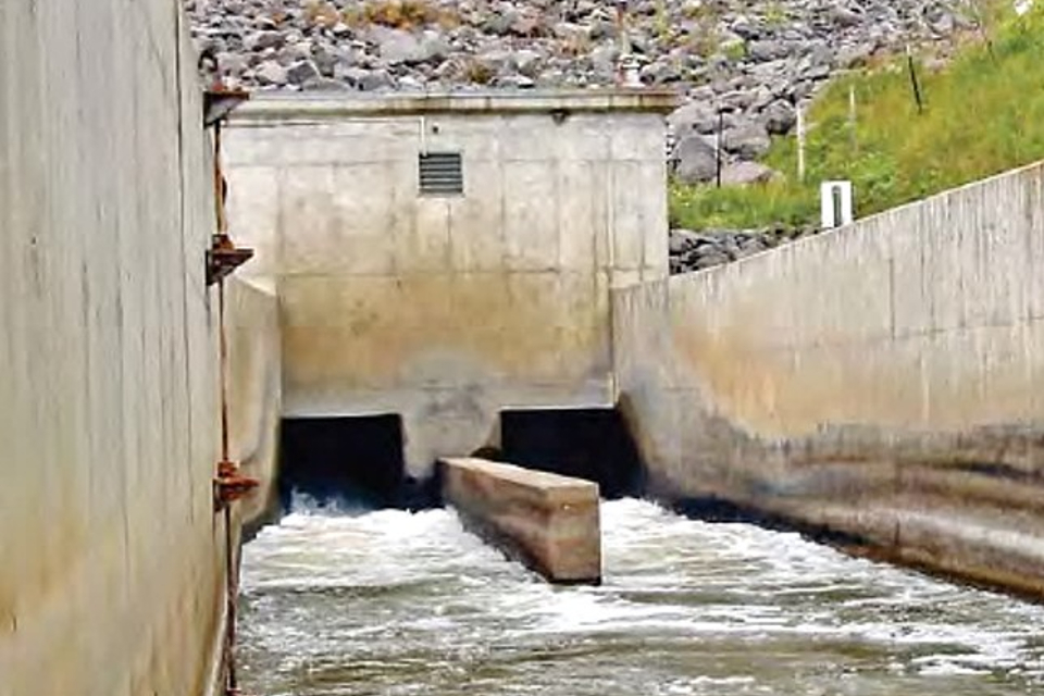 A free weir inlet structure is typically next to or over the dam (figures 1 and 2). It is often followed by an open channel ‘conveyance structure’. The conveyance structure conveys the flow of water from the inlet structure and discharges it downstream of the dam.