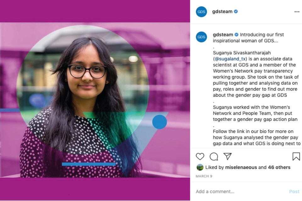 Instagram is a great way to bring content to life, and we use this to showcase the work and culture of GDS. We sometimes use Instagram as a channel for campaigns, if audience insight suggests our target audience is active there.