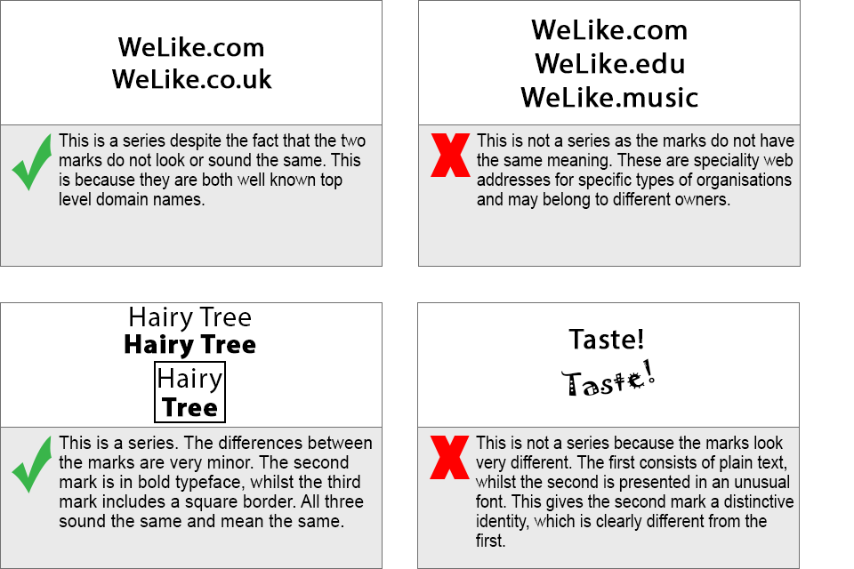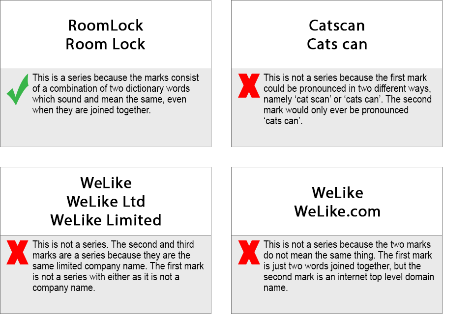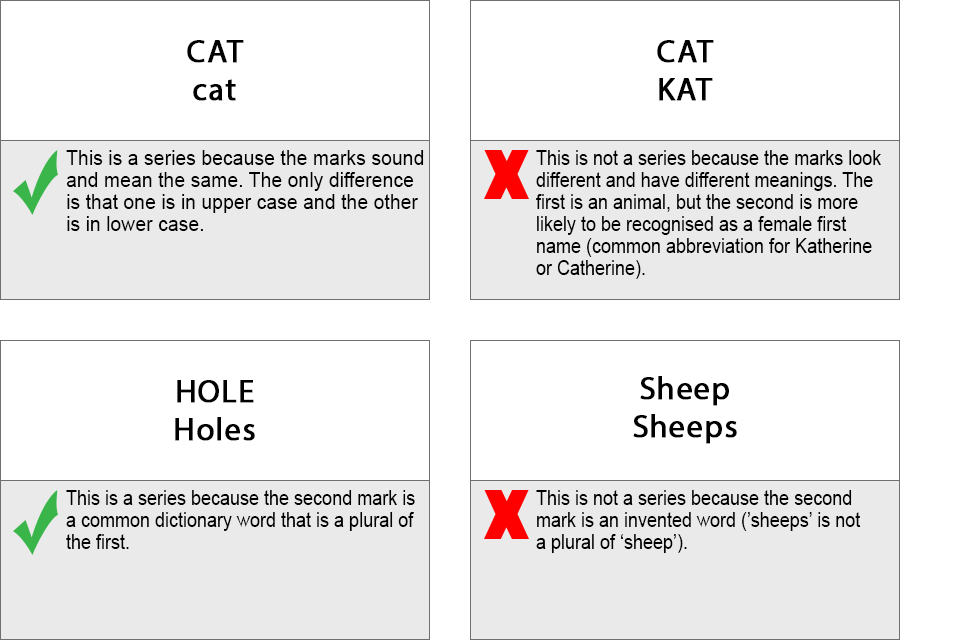 If you are still unsure whether your marks will be acceptable as a series you should speak to a trade mark attorney.