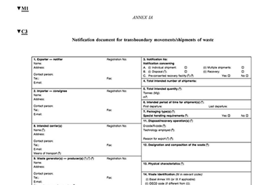 Some waste can be exported under a lower level of control, and only an Annex VII form needs to accompany the waste on transfer.